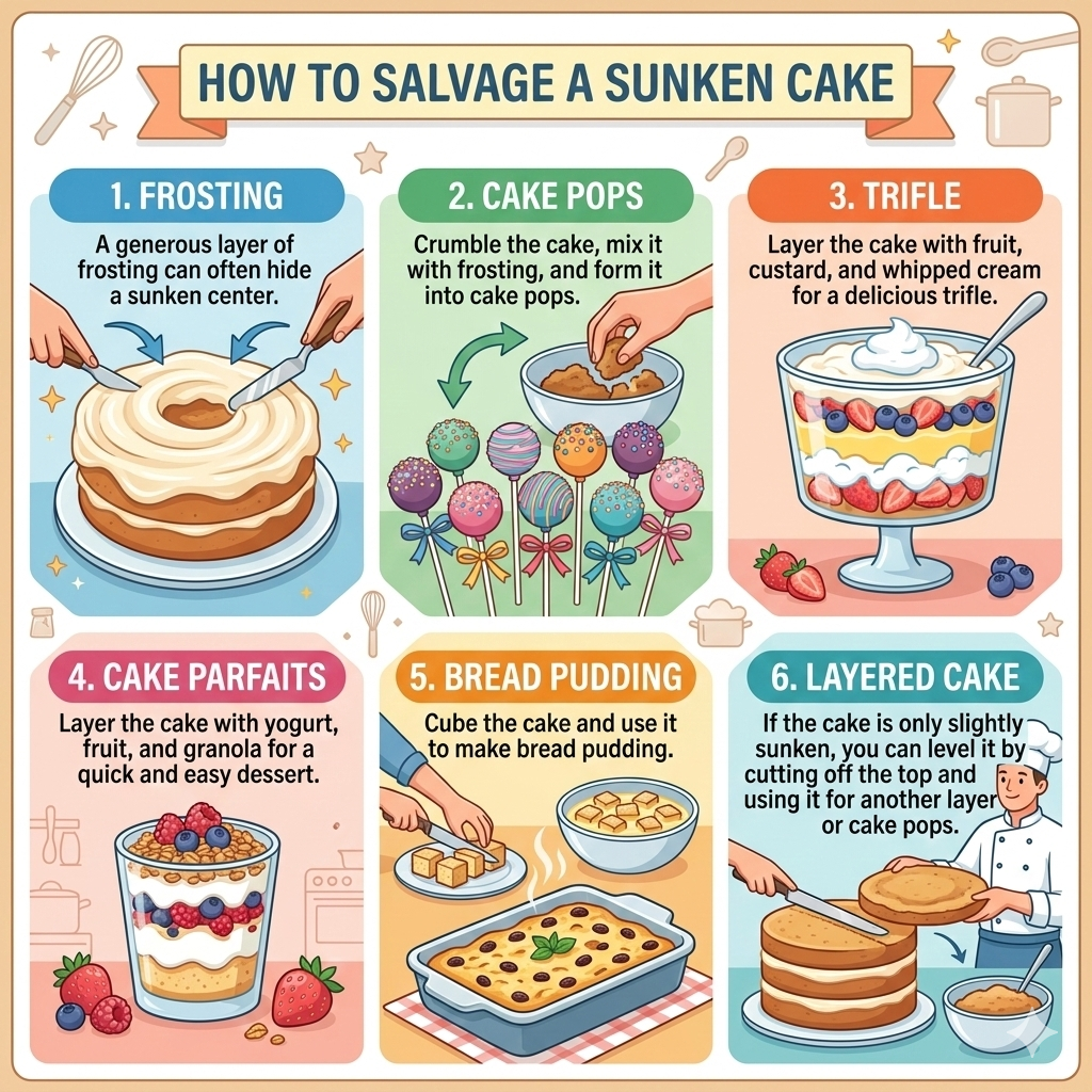 Even a sunken cake can often be salvaged. Here are a few ideas: